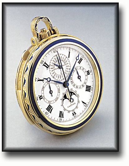 Ultra-Complicated Cartier enamelled 18k yellow gold Minute Repeater, with 48 month perpetual calendar, split-seconds chronograph and display back. circa 1967 |